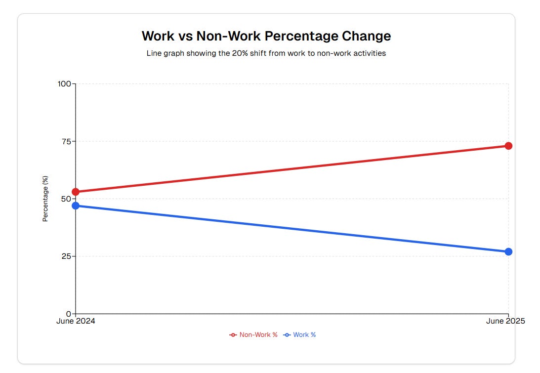 This means people who initially used ChatGPT for work are increasingly using it for personal reasons - they're finding more value in non-work applications.